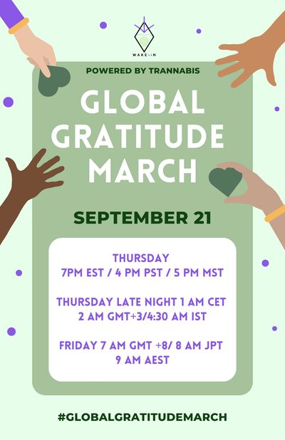 Mission: The Global Gratitude March is a free family-friendly communal gathering to raise the collective consciousness of gratitude within humanity and on Gaia (Earth). This energetic will exist in perpetuity for all to add in more gratitude, as well as to receive. The initial March on World Gratitude Day, September 21st, 2023 is going to be a hybrid virtual experience, which will be streamed for free and with 2024, the intention is for it to be held in-person with stages on all the ley lines around the world, as well as virtually in a hybrid format for accessibility.